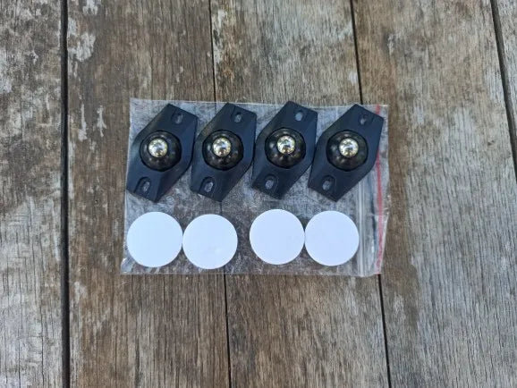 Buen invento. Las usé para un mueble de cocina y ahora puedo desplazarlo sin romperme la espalda. Adhesivo fuerte, ruedan suave y no hacen ruido. Repetiré para el resto de muebles.